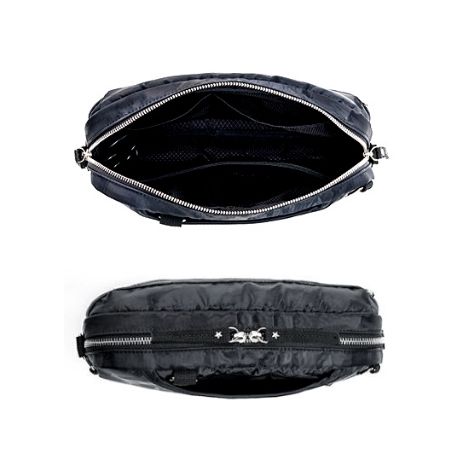 メイン収納部は左右どちらからも開けられる、Wジップを採用。左右どちらの肩にかけても開け閉めしやすい。ファスナーの持ち手に★のワンポイントで持ちやすさアップ。